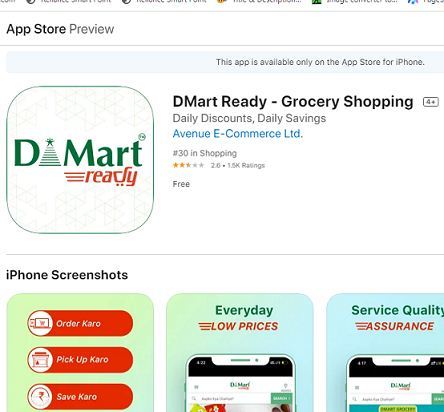 - D-mart Online Shopping App Name (Apple);- DMart Ready – Grocery Shopping